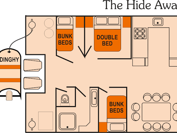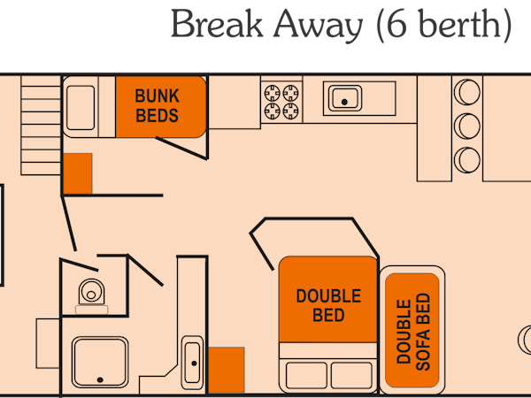 Break Away features a double bed room and a bunk-bed room. As with the Hide Away, there is a double divan which folds out to another double bed.
