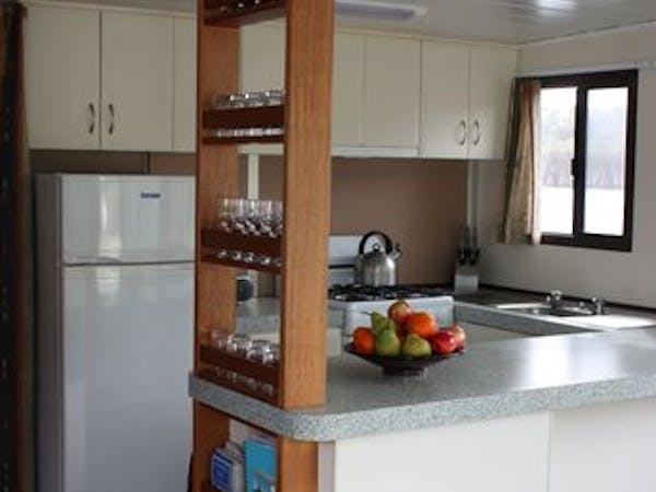 The kitchen is fully equipped with a household fridge/freezer, gas oven, grill and hotplates. All crockery, cutlery and cooking utensils are provided.